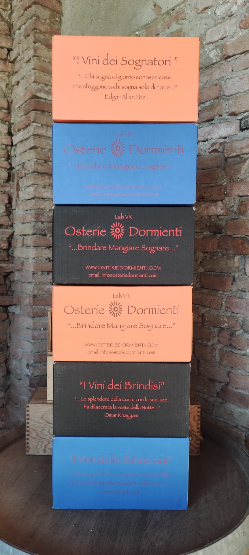 Calice serigrafato Osterie Dormienti con sacca portacalice omaggio.